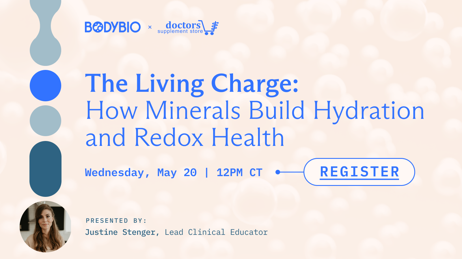 May 20 Webinar- The Living Charge: How Minerals Build Hydration and Redox Health 12:00 pm - 1:00 pm Online Event Details Get Directions
